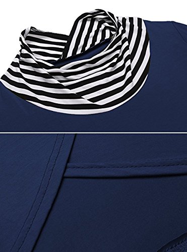 Fancathy Donna Pullover Maniche Lunghe Scollo AD Avamplaggio Camicetta con Cuciture a Righe Sovrapposte Una Sopra l'altra Asimmetrico Top (Blu, L)