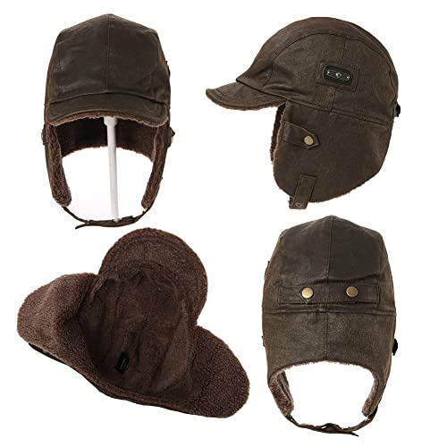 Fancet Unisex Inverno Aviator Pilot Cap Earflap Caccia Trapper Cappello Sci Neve Cappelli Impermeabile Ecopelle/Cotone Cerato, Marrone, M
