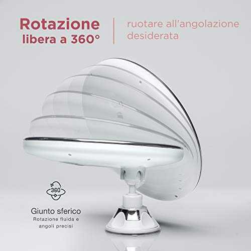 Scopri ogni dettaglio con l'ingrandimento 10x - L'ingrandimento ideale per consentirti di osservare in dettaglio una sezione specifica del tuo viso e dunque è perfetto per il trucco degli occhi, l'inserimento delle lenti a contatto e la cura della pelle