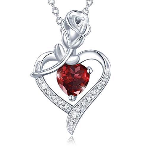 FANCIME Amore Rosa Cuore Collana in Argento Sterling 925 Granato Collana Gennaio Birthstone Collana, Regali di Compleanno di Gioielli per Donne/Lei/Ragazza/Madre/Fidanzata/Moglie, 40+5cm