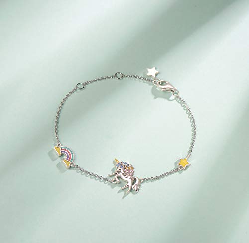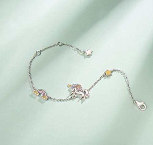 FANCIME Bracciale Unicorno Charm per Donna Ragazze in Argento Sterling 925 con con L'Arte dello Smalto Gioielli per Donna Ragazze Bambini - Catena Lunghezza: 17 + 3 cm