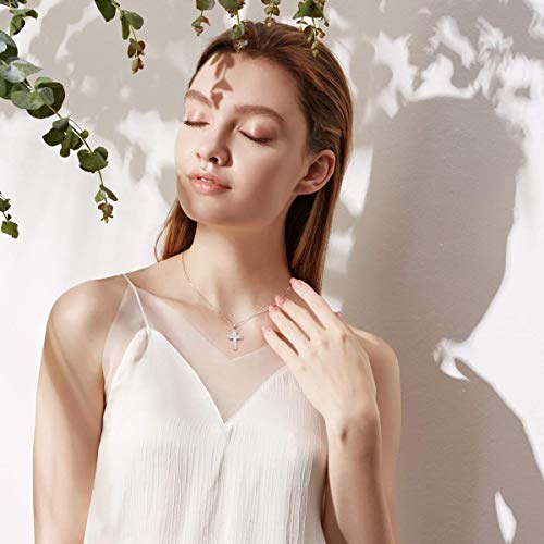 FANCIME - Collana in argento Sterling 925 placcato in oro bianco con zirconia cubica, crocifisso, delicato ciondolo a forma di crocifisso, per donne, 40,6 cm + 5,1 cm di estensione