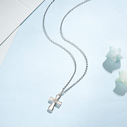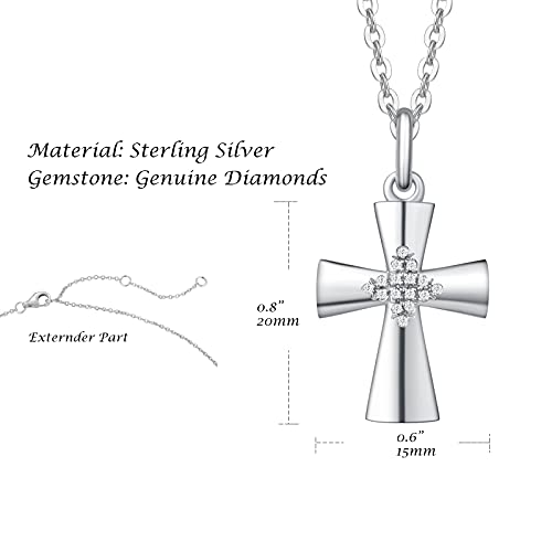 FANCIME Collana Donna Croce in Argento Sterling 925 Vera Diamanti Croce Collana 0.033ct Regalo per Lei Mamma Moglie Fidanzata Compleanno Anniversario Lunghezza della Catena 40+5CM