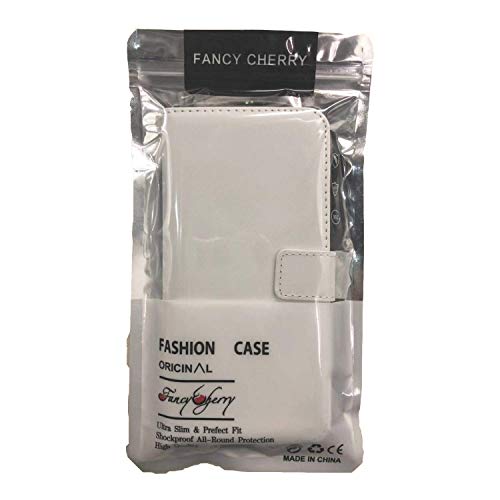 Fancy Cherry, custodie a libro di lusso, in vera pelle, con porta carte di credito, per Apple iPhone 4, 4S, iPhone 5, 5S, 5C, iPhone 6, 6 Plus, iPhone 7, 7 Plus, iPhone 8, 8 Plus, iPhone X, alta qualità, Pelle, White, per iPhone 5c