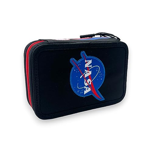 Fancy Plumier Astuccio Triplo Scuola Nasa, 3 Zip con Scomparti organizzati, Completo 44 pezzi Colori GIOTTO, Bambino Originale 20 cm Nero Rosso