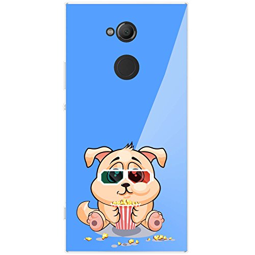Fancy A Snuggle Animals indossa occhiali 3D che mangia popcorn cover/custodia rigida per Sony cellulari, Adorable Puppy Eating Popcorn, Sony Xperia XA2