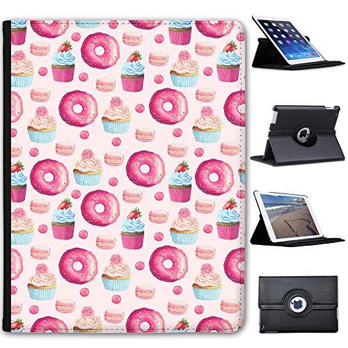 Fancy A Snuggle Dolce chicche Case Cover/Portafoglio in Similpelle per Il Apple iPad Nero Design Donut Cupcake Pink iPad 2, 3 & 4