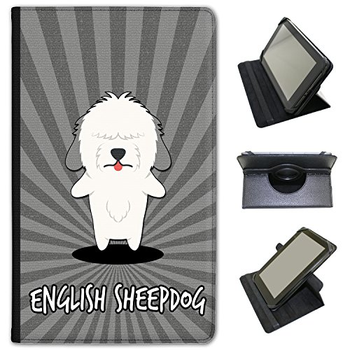 Fancy A Snuggle English Cartoon Dogs in Similpelle Dotata di Copertura, con Supporto Verticale per Kobo Tablet Nero English Sheepdog, Dulux Dog Kobo Aura H20 Waterproof