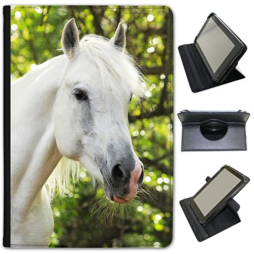 Fancy A Snuggle Superb Bellissimi Cavalli Stallone Bianco in Similpelle Dotata di Copertura, con Supporto Verticale per Tablet Samsung Nero Portrait Elegant White Horse Samsung Galaxy Tab 3 10.1 inch