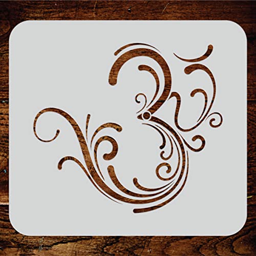 Fancy OM, stencil spirituale indù, 12,7 x 11,43 cm (S) - AUM Indian Mantra Sanscrito Indù Stencil per pittura