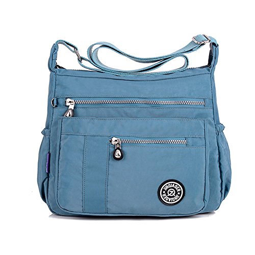Fancybox - Borsa a tracolla da donna, in nylon leggero, con tasche con cerniera, Blu