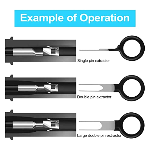 Facile da usare: non è necessario fare leva per aprire i terminali, basta spingere e tirare i pin del terminale. Gli strumenti per la rimozione dei pin elettrici possono rimuovere senza sforzo i fili terminali dal connettore del cablaggio e aggiungere un nuovo filo, in modo da poter mantenere il cablaggio originale di fabbrica e collegare il proprio dispositivo elettronico senza alcun danno