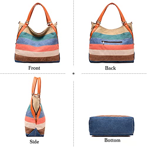FANDARE Tela Borsa Tracolla Spalla Tote Donna Borsa a Mano Messenger per Shopping Viaggio Partito Work Crossbody Bag Multicolore a Righe A