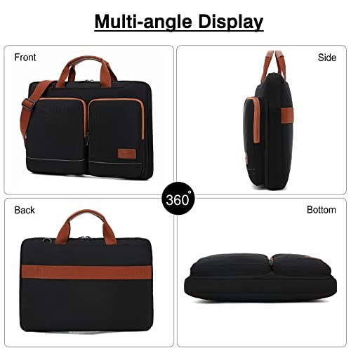 Metodi di trasporto a 3 vie - Offrendo comfort ergonomico e praticità di viaggio, questa borsa per laptop è dotata di una cinghia per il bagaglio per un facile fissaggio al bagaglio a rotelle, doppie maniglie per il trasporto e una tracolla regolabile/staccabile con imbottitura a nido d'ape traspirante per alleviare la pressione. Costruito con fibbie premium e cerniere SBS per garantire prestazioni di lunga durata. Implementato con forti cuciture rinforzate per una maggiore resistenza e durata.