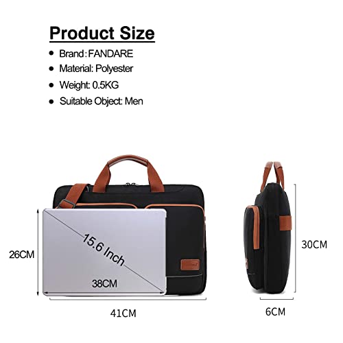 FANDARE Borse e Messenger per PC portatili Borsa Porta PC Borsa per 15.6 pollice Laptop Borsa Messenger Uomo Borsa a Tracolla Ventiquattrore per Insegnanti Scuola Viaggio Lavoro Scuola Nero