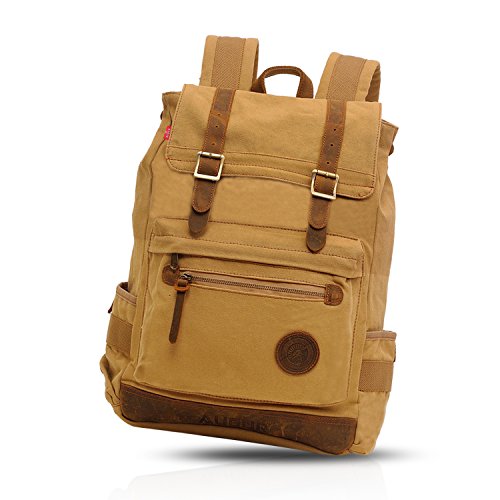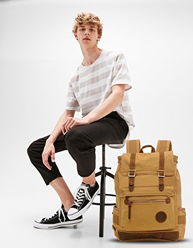 FANDARE Classico Zaino 15.6 Pollici Computer Portatile Studente Viaggio Affari Escursioneper Uomo/Donna Borsa Tela Cachi