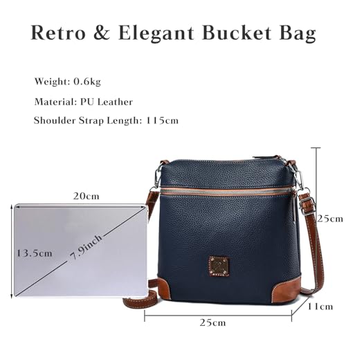 FANDARE Retro Borsa a tracolla da donna Borsa a secchiello Borsa a Spalla Borsa Messenger in Pelle PU Borse a Spalla Elegante Messenger Crossbody Bag Shopping Viaggio Sacchetto Borsetta Blu Scuro