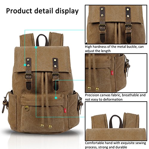 FANDARE Vintage Zaino per Scuola Computer un Tablet Notebook Laptop Portatile 16'' Viaggi Daypack School Bag Tela Caffè