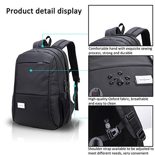FANDARE Zaino Computer Portatile Notebook 15.6 Pollici Laptop Business Viaggi Esterno Zaino Daypack School Scuola Borsa Escursionismo Uomo Durevole Resistente Allo Strappo Antiurto Oxford Nero 1