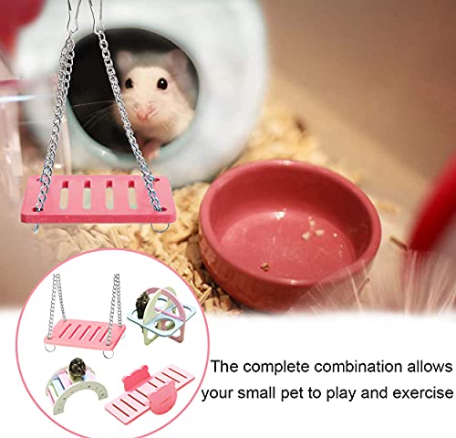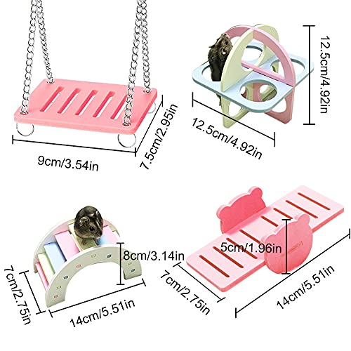 FANDE Set di 4 Giocattoli per Criceti, Accessori per Gabbie per Criceti, Ponte Arcobaleno, Altalena a Dondolo, Giocattolo per Arrampicate, per Piccoli Animali Domestici