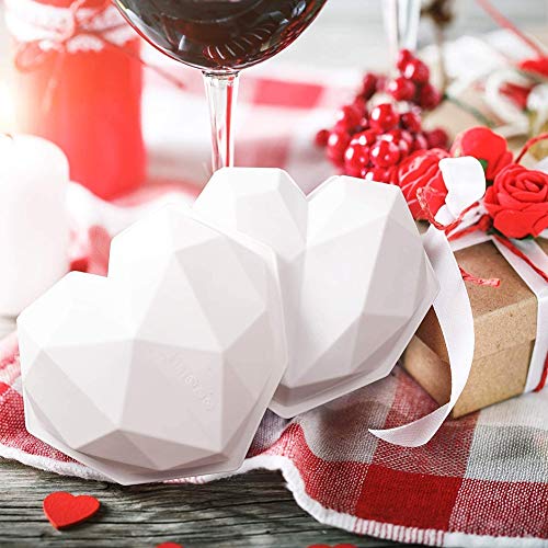 FANDE Stampo in Silicone a Forma di Cuore, Stampo per Torta a Forma di Cuore con Diamante 3D, Stampo per Cioccolato, Stampo per Mousse, Strumenti di Cottura DIY di San Valentino, 2PCS