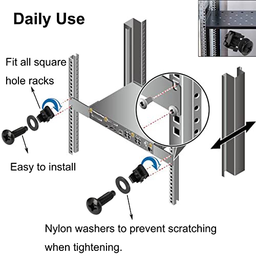 Ampio utilizzo: il set di fissaggio universale per viti a rack M6* 20 è ideale per collegare dispositivi da 19 pollici come switch, server, UPS, patch panel e dispositivi NAS in armadi dati di quasi tutti i fornitori.