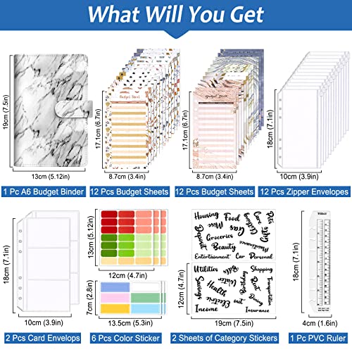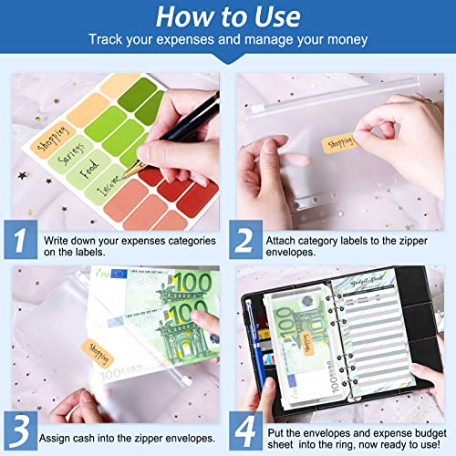 【Pacchetto di 47 pezzi】 - Riceverai 1 raccoglitore ad anelli A6, 24 fogli di budget, 12 buste di budget trasparenti con cerniera in PVC, 2 tasche per carte, 6 etichette adesive colorate, 2 adesivi di categoria inglese e 1 righello. Budget Binder ti aiuterà a gestire tutti i tuoi budget familiari mensili e le tue finanze personali in un unico posto: risparmi, debiti, pagamenti dovuti, fatture, ricevute, flusso di cassa, monitoraggio delle spese e altro ancora.