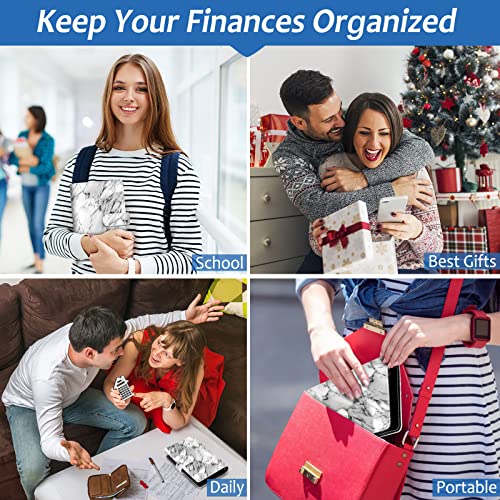【Materiale Durevole】 - Raccoglitore budget realizzati in pelle PU di alta qualità,morbida al tatto.Il design della stampa in marmo è elegante ed elegante,resistente e non facile da indossare,garantendo un uso a lungo termine e una protezione efficace dei tuoi oggetti.Lo slot per carte di credito integrato è dotato di materiali di blocco RFID avanzati,che possono impedire efficacemente a lettori non autorizzati di scansionare le tue informazioni,proteggendo la tua proprietà e la tua privacy.