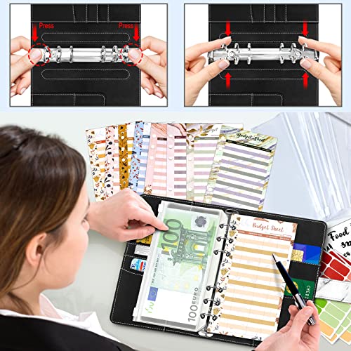 【Comodo e Portatile】 - Raccoglitore per risparmiare denaro con design funzionale classico,dimensioni 19 x 13 cm,leggero e facile da trasportare, adatto per borsetta,zaino,borsa da viaggio o valigia.Con una comoda struttura interna, può contenere penna, carte bancarie e passaporto, ecc. 6 anelli di montaggio in acciaio inossidabile, funzionamento semplice, premere le estremità per aprire per aggiungere o rimuovere buste o fogli di bilancio dal raccoglitore, quindi premere gli anelli per chiudere.