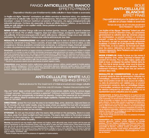 Formulazione: I fanghi anti cellulite sono senza parabeni. E' un dispositivo medico CE. leggere attentamente le avvertenze e le istruzioni d'uso. Leggere le avvertenze riportate sulla confezione.