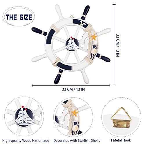 Materiale e dimensioni: Questa ruota di nave in legno e l'ancora sono realizzati a mano con legno di alta qualità.Dimensione della ruota: 33 * 33cm (L * W);