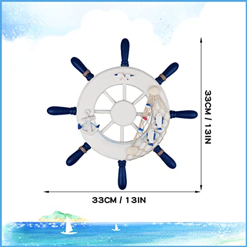 Viene fornito con un piccolo gancio triangolare in metallo sui raggi del retro, che lo circonda ed è facilmente montabile su una parete che necessita di una decorazione da spiaggia.Questa ruota da nave in legno dipinta di azzurro e bianco, con una rete da pesca, alcune conchiglie e una corda, la rende il perfetto decoro per appendere le pareti nautiche per accentuare la tua casa, mostrare l'atmosfera nautica.
