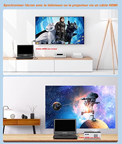 FANGOR Lettore DVD portatile Blu-ray da 14 pollici con batteria ricaricabile, supporta Full HD 1080P Dolby Audio MP4/USB/SD/MMC, schermo di sincronizzazione con HDMI Out/AV in