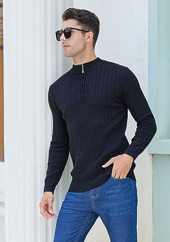 Maglione da uomo: collo semi-alto con scollo a V e zip a un quarto, maglione a maniche lunghe con motivo a canapa, può essere indossato in primavera, autunno e inverno
