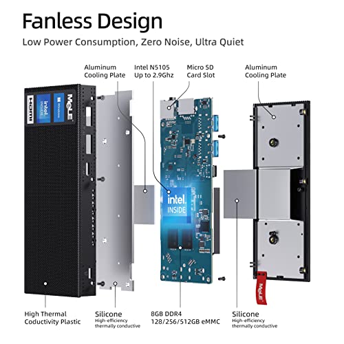 【CPU più veloce Celeron N5105】 MeLE Fanless PC Stick PCG02 PRO, alimentato dal processore Celeron N5105 Quad-Core (frequenza di base 2,0 Ghz, frequenza Turbo fino a 2,9 GHz), integrato nella nuovissima RAM DDR4 da 8 GB.Il micro pc soddisfa le esigenze di base su lavoro d'ufficio, navigazione web, home entertainment, lezioni online, manicure industriale IoT, media business, digital signage, astrofotografia fotografia con telescopio, ecc.