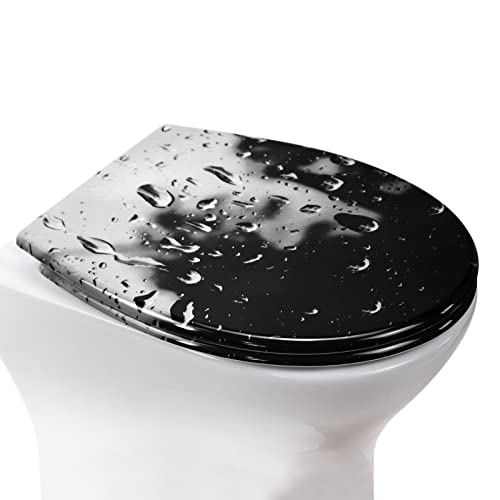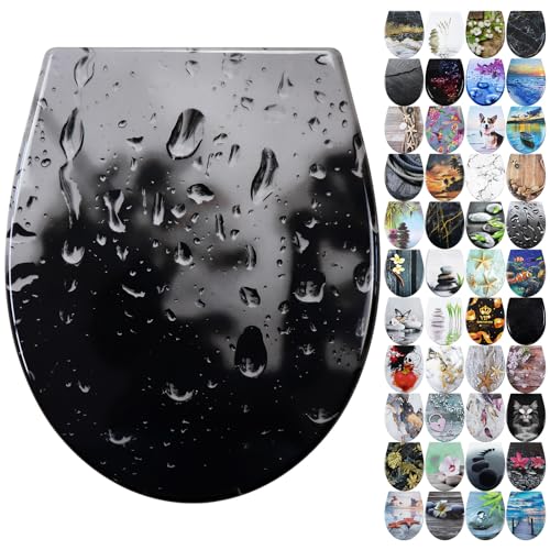 Fanmitrk Coperchio per WC, sedile WC con abbassamento automatico, coperchio in Duroplast, montaggio dall'alto, smontaggio con un clic, motivo stampato su 3 lati del sedile WC (UF81921)