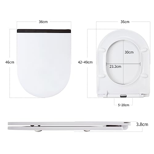 Fanmitrk Sedile WC con abbassamento automatico, coperchio WC a forma di D, coperchio in Duroplast con chiusura rapida, occhialini con striscia decorativa in metallo lucido, bianco