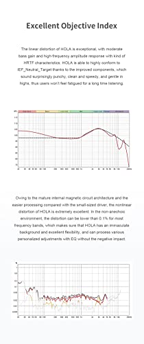 Eccellente indice obiettivo: la distorsione lineare di HOL A è eccezionale, con guadagno basso moderato e risposta ad ampiezza ad alta frequenza con tipo di caratteristiche HRTF. HOLA è in grado di conformarsi perfettamente a IEF_ Neutral_ Target grazie ai componenti migliorati, che suonano sorprendentemente incisivo, pulito e veloce e delicato in alto, quindi gli utenti non si sentiranno affaticati per un lungo periodo di ascolto.