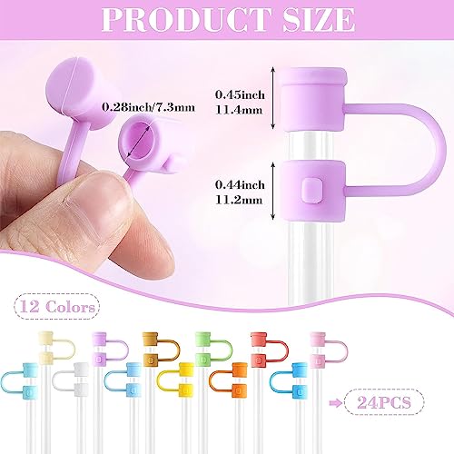 FANNAS 24 Pezzi 8 mm Diametro Tubo Tappi Copri Cannuccia in Silicone,12 Colori Copertura in Cannuccia in Silicone,Copertura per Punta di Cannuccia Portatile per Proteggere Dalla Polvere e Dalle