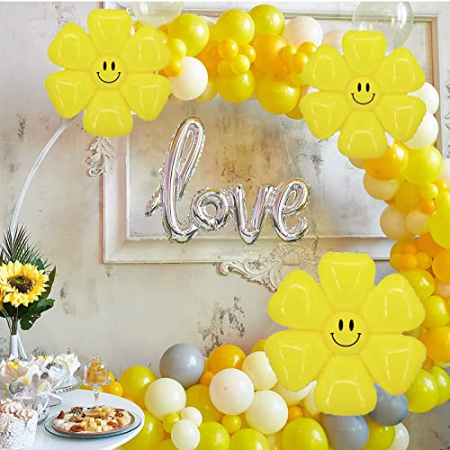 FANNAS 10 Pezzi Palloncino in Pellicola con Margherite, Volti Sorridenti Set di Palloncini a Margherita Palloncini a Forma di Fiore, Adatto per Feste di Compleanno, Fidanzamenti(Giallo)