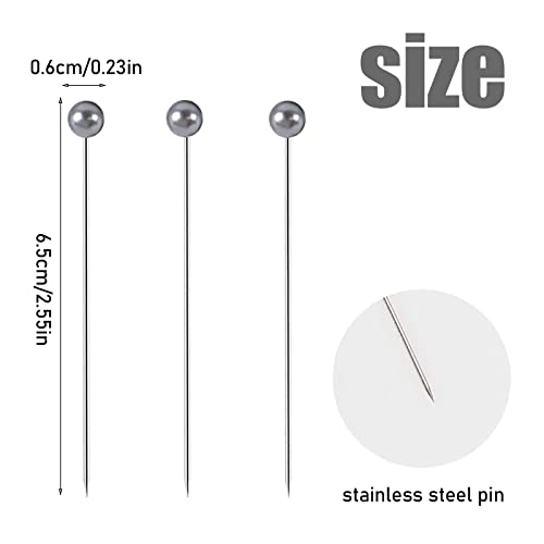 【Design Pratico】: Questi spille con teste di perle di plastica grigio sono facili da vedere in qualsiasi tessuto. La punta di vetro è attaccata all'ago attraverso una tecnica di lavorazione unica. La punta di vetro non si stacca quando estrai l'ago dal tessuto.