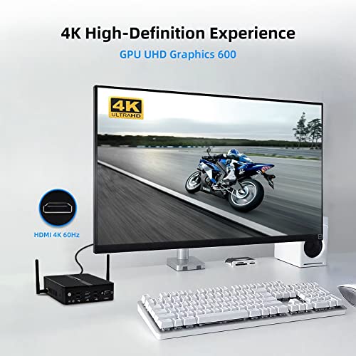 [MINI PC 4K HD GRAPHICS 600] Dotato di Intel UHD Graphics 600 e supporto 4K HD. Questo mini computer industriale può essere collegato a set-top box, lettori DVD, giochi TV, amplificatori integrati, audio digitale, TV, ecc., per farti godere di una visione più chiara e vedere più dettagli in ufficio, a casa, nelle scuole o nei centri commerciali. Lavora e gioca a modo tuo praticamente ovunque.