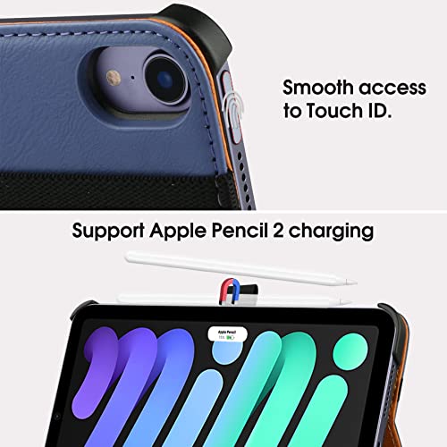 FANRTE Custodia protettiva per iPad Mini 6 8,3" 2021 (6a generazione Mini, A2567 A2568 A2569), custodia protettiva multi-angolo, con tasca frontale e Auto Sveglia/Sonno((Blu scuro))