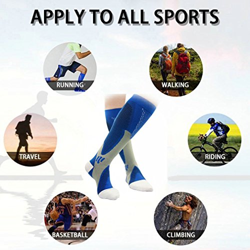 FANSIR 2 Coppie Calze a Compressione per Uomini e Donne, Calzini Compressione Graduata Sport Calze Migliore Circolazione Sanguigna, Prevenire i Coaguli diSangue,Sollievo dal Dolore Sportivo Fit per Corsa,Infermieri,Uso Medico,Stinchi,Viaggi,Di Volo,Potenziano Circolazione,Recupero (Blu 2 Coppie, XXL)