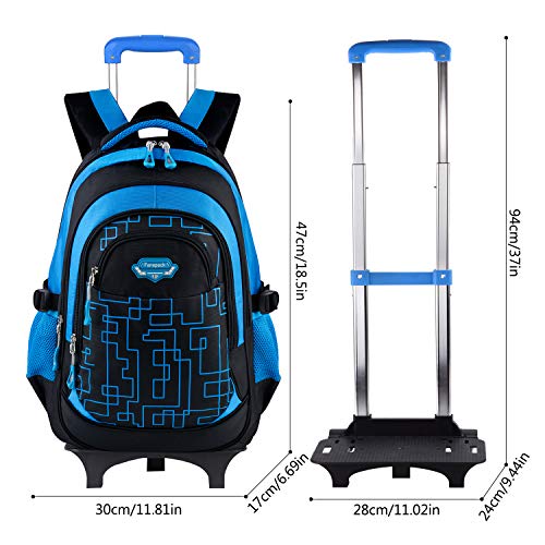Fanspack Zaino Trolley Scuola, Zaino Scuola Trolley Elementare Bambino con Ruote (Blu2)