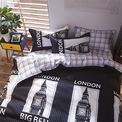 Fansu Set di Biancheria da Letto Matrimoniale de 4 Pezzi, Elegante Set Copripiumino per Letto Matrimoniale Chiusura a Zip con Lenzuola Piane e 2 federe (220x240cm,Londra Nera)