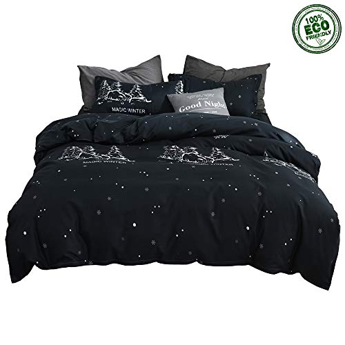 Fansu Set di Biancheria da Letto Matrimoniale 4 Pezzi, Microfibra Set Copripiumino per Letto Matrimoniale Chiusura a Zip con Lenzuola Piane e 2 federe (200x200cm,Nero)