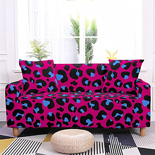 Fansu Copridivani Elastici 1 2 3 4 Posti,Copridivano Stampa Leopardata Colorata,Universale Copridivani con Braccioli,Poliestere Antiscivolo Copri Divano +Federe (Fucsia,3 posti(190-230cm))