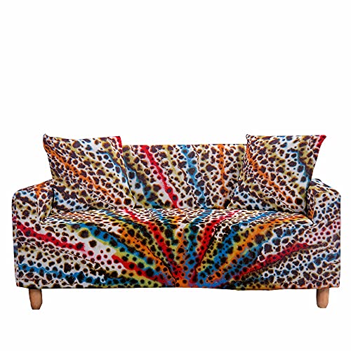 FANSU Copridivani Elastici 1 2 3 4 Posti, Copridivano con Stampa Leopardo Moda 3d, Universale Copridivani con Braccioli Divano Protector, Antiscivolo Copri Divano (Leopardo colorato,3 posti)