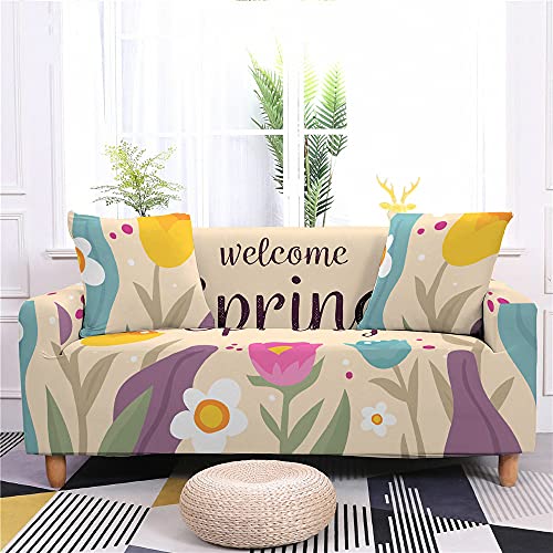 FANSU Copridivano Elasticizzato Universale Antiscivolo 1/2/3/4 Posti,Fodera per Divano con Stile Pastorale 3D,Poliestere Antiscivolo Copri Divano con Braccioli+1 Federe (Fiore acquerello,1 posto)
